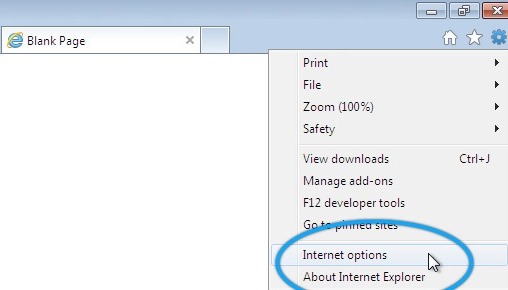 In Internet Explorer 6, 7 or 8, "Internet Options" is the bottom menu item:
