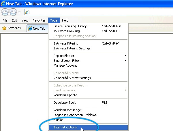 In Internet Explorer 6, 7 or 8, "Internet Options" is the bottom menu item: