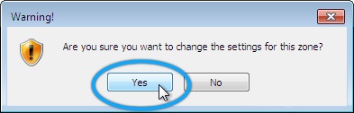 Because you are changing an important setting, Internet Explorer will prompt you to confirm that you really want to do this. Press the "Yes" button to confirm this change.